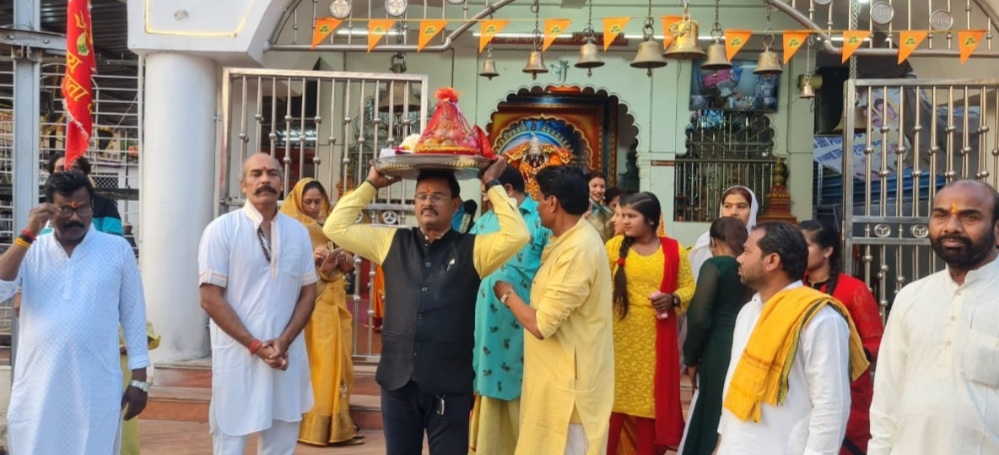 नर्मदापुरम /प्रदीप गुप्ता /महाशिवरात्रि पर सातरस्ता स्थित दक्षिणेश्वरी माता महाकाली और काले महादेव का विवाह होगा एवं इसी दौरान शिवशक्ति का मिलन भी होगा। समिति अध्यक्ष प्रकाश शिवहरे ने बताया कि 8 मार्च शिवरात्रि के अवसर पर जब भोले की बारात सातरास्ते दक्षिणेश्वरी माता महाकाली मंदिर आती है तो शिव शक्ति का मिलन होता है। गुरुवार को दक्षिणेश्वरी माता महाकाली मंदिर से समिति सदस्यों ने काले महादेव मंदिर भोले की लगुन रस्म लेकर पहुंचे। इस रस्म के दौरान भगवान भोलेनाथ को लगने वाली हल्दी , उपटन और अन्य सामग्री पहुँचाई गई। समिति के श्री शिवहरे ने बताया कि दक्षिणेश्वरी माता महाकाली मंदिर प्रांगण में आज से दोपहर 2 से 5 बजे तक प्रतिदिन हल्दी के रस्म होगी। महिलाएं मंगल गीत गाएगी। 6 मार्च को मंडप का कार्यक्रम होगा एवं प्रतिदिन हल्दी का लेपन लगाया जाएगा। इस लगुन कार्यक्रम में समिति के प्रदीप शिवहरे , नीरज मालवीय , अतुल मौर्य , बंटी मिश्रा , अरुण मौर्य सहित बड़ी संख्या में महिलाएं पहुंची।
