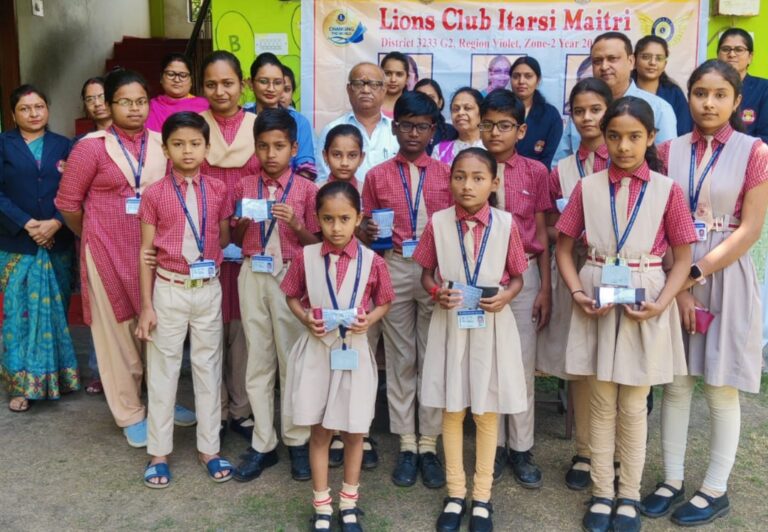 इटारसी : मदर टेरेसा पब्लिक हाई स्कूल इटारसी में सेवा सदन नेत्र चिकित्सालय प्राथमिक जांच केंद्र द्वारा फ्री आई स्कैनिंग कैंप आयोजित किया गया था I जिसमें लगभग 20 बच्चों की दृष्टि कमजोर पाई गई थी। कमजोर दृष्टि वाले छात्र-छात्राओं को लायंस क्लब इटारसी मैत्री द्वारा निशुल्क चश्मे प्रदान किए गए। एक छात्र की आंखों में जटिल समस्या के इलाज के लिए भोपाल सेवा सदन नेत्र चिकित्सालय भेजा जाएगा इसके इलाज के खर्च का वाहन करने की घोषणा लायंस क्लब मैत्री की अध्यक्ष शिल्पा अग्रवाल द्वारा की गई। इस दौरान लायंस क्लब मैत्री की अध्यक्ष शिल्पा अग्रवाल, लायंस मनीष अग्रवाल संयुक्त व्यापार संघ के सचिव सन्मुख दास चेलानी, स्कूल डायरेक्टर शीलमन भिंगारदिवे एव नेत्र चिकित्सालय से कनक ठाकुर, शिक्षिका रानी शर्मा, आशा यादव, रिमझिम गुप्ता, अंजू भार्गव, मोना कुशवाहा, शाहीन खान, ममता सागोरिया, प्रिया मालवीय, यशस्वी सिसोदिया, वंदना पवार, दीक्षा राजपूत एवं छात्र-छात्राएं उपस्थित रहे।