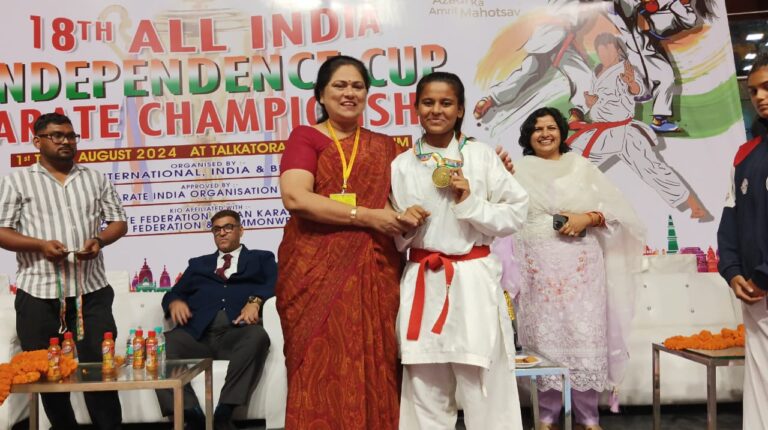 दिल्ली तालकटोरा स्टेडियम में आयोजित हुई 1- 4 अगस्त 18वी आल इंडिया इंडिपेंडेन्स क्रांति कराटे प्रतियोगिता में तिनका सामाजिक संस्था के खिलाड़ियों ने भाग लिया जिसमे रहटगांव की राधिका गौर ने -50kg वजन सीनियर केटेगिरी में शानदार प्रदर्शन करते हुए दूसरा स्थान प्राप्त कर रजत पदक जीतकर अपने नाम किया , वही विकास कुमार एवं सत्यम गौर ने शानदार प्रदर्शन किया वहीं अनीश कहार ने कोच की भुनिका निभाई राधिका के मेडल जितने पर तिनका सामाजिक संस्था के अध्यक्ष श्री रितेश तिवारी एवं सचिव मना मंडलेकर,कोषा अध्यक्ष अनिल मल्हारे, सिवनी कराटे कोच कुलदीप डोके ने बधाईयां दी हैं।