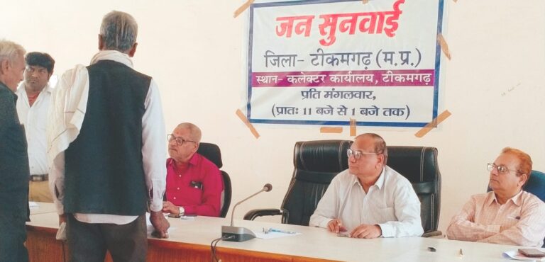 टीकमगढ़। शासन के निर्देषानुसार आज जिला मुख्यालय पर संयुक्त कार्यालय परिसर में जनसुनवाई आयोजित की गई। संयुक्त कार्यालय परिसर में अपर कलेक्टर श्री पीएस चैहान ने संयुक्त कलेक्टर श्री शैलेन्द्र सिंह एवं डिप्टी कलेक्टर श्री एसके तोमर तथा संबंधित अधिकारियों के साथ आमजन से प्राप्त शिकायतों एवं समस्याओं को सुना तथा निराकरण हेतु संबंधित विभागों के अधिकारियों को निर्देषित किया। उन्होंने प्राप्त आवेदनों पर संबंधित विभागों के अधिकारियों को त्वरित कार्यवाही करते हुए शीघ्र निराकरण करने के निर्देश दिए। इस दौरान विभिन्न विभागों के संबंधित अधिकारी उपस्थित रहे। जनसुनवाई में मंगलवार 25 मार्च 2025 को आमजन से प्राप्त 95 आवेदनों पर सुनवाई की गई। आवेदन पत्रों को 10 दिवस में निराकृत कर उसका प्रतिवेदन प्रस्तुत करने के निर्देश दिये गये। जनसुनवाई में आमजनता से प्राप्त पेंशन, उपचार सहायता, खाद्यान्न पर्ची प्राप्त नहीं होने, गरीबी रेखा में नाम शामिल करने, सीमांकन, विधवा तथा दिव्यांग पेंशन, राहत राशि के वितरण तथा जाति प्रमाण पत्र सहित विभिन्न आवेदन पत्रों पर सुनवाई की गई।