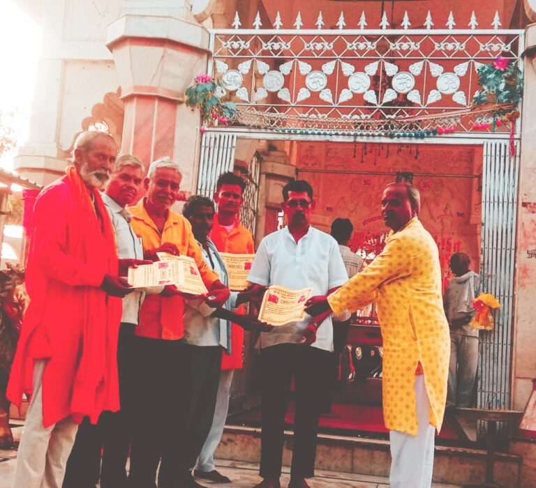 टीकमगढ़। वैष्णो देवी अखंड ज्योति भक्त मंडल ने 23 सितंबर 2025 मंगलवार को अपने पूर्व निर्धारित कार्यक्रम के अनुसार जिला मुख्यालय के नजदीकी धर्म क्षेत्र सिद्ध शक्तिपीठ बगाज माता मंदिर प्रांगण में भव्य कन्या भंडारे का आयोजन किया जहां आसपास क्षेत्र की कन्याओं ने भोजन किया और लोगों ने प्रसाद ग्रहण कर धर्म-लाभ अर्जित किया इस मौके पर वैष्णो देवी अखंड ज्योति भक्त मंडल के बंसी सिंधी,सुखदीन विश्वकर्मा, वरिष्ठ पत्रकार गोविंददास विश्वकर्मा, हरीश जोशी सहित भक्त मंडल ने बताया कि प्रतिवर्ष नवदुर्गा महोत्सवों में यह कन्या भंडारा कराया जाता है जो इस नवदुर्गा महोत्सव में भी कराया गया इस दौरान भव्य संगीतमय भजन, कीर्तनों का भी आयोजन कराया गया जिसमें गायक इकबाल खान पोटया, गायक एवं वरिष्ठ पत्रकार गोविंददास विश्वकर्मा सहित अनेक कलाकारों ने सहभागिता की और भजन,कीर्तन सुना कर श्रोताओं का मन मोह लिया इस अवसर पर वैष्णो देवी अखंड ज्योति भक्त मंडल ने कलाकारों को प्रमाण पत्र देकर सम्मानित भी किया। जब कलाकारों को सम्मानित किया गया उस दौरान बगाज माता मंदिर प्रबंधन समिति के जगदीश लोधी सुंदरपुर सहित शिक्षक दमरू प्रजापति मातोली एवं भक्त मंडल के वंशी सिंधी टीकमगढ़,सुखदीन विश्वकर्मा सुंदरपुर सहित अन्य गणमान्य लोग मौजूद रहे । उल्लेखनीय है कि वैष्णो देवी अखंड ज्योति भक्त मंडल द्वारा वर्ष में दो बार इस क्षेत्र पर कन्या भंडारा कराया जाता है जहां चैत्र माह के नवदुर्गा महोत्सव के प्रारंभ के दौरान एवं कुंवार माह के नवदुर्गा महोत्सव के प्रारंभ अवसर पर यह भंडारा कराया जाता है।