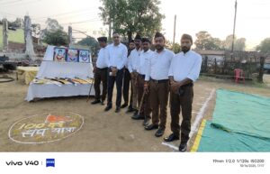 पूरे ग्राम में पथ संचलन निकाला गया जहा ग्रामीण जनों ने पुष्वर्षा कर स्वागत किया