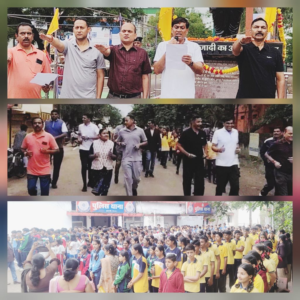 इटारसी: लौहपुरुष सरदार वल्लभभाई पटेल का जन्म दिवस रानी अवंती हायर सेकेंडरी स्कूल के साथ विभिन्न स्कूलों के बच्चों ने एक भारत श्रेष्ठ भारत के एकता का संदेश देते हुए रन फॉर यूनिटी निकाली। यह कार्यक्रम नगर पुलिस प्रशासन के सहयोग से विभिन्न स्कूलों के विद्यार्थियों द्वारा किया गया। इस अवसर पर एकता दिवस की शपथ एसडीओपी वीरेंद्र कुमार मिश्रा द्वारा दिलाई गई। नगरपालिका अध्यक्ष पंकज चोरे, एसडीएम नीलेश शर्मा, तहसीलदार सुनीता साहनी, टीआई गौरव सिंह बुंदेला के साथ रानी अवंती स्कूल संचालक डॉ प्रताप सिंह वर्मा जीनियस प्लानेट स्कूल संचालक जाफर सिद्दीकी के साथ स्कूली शिक्षक एवं अन्य जनप्रतिनिधि भी मैराथन दौड़ में शामिल हुये। सभी अतिथियों द्वारा मैराथन का समापन न्यास कॉलोनी स्थित सरदार वल्लभभाई पटेल की प्रतिमा पर माल्यार्पण कर श्रद्धांजलि देकर किया गया।
