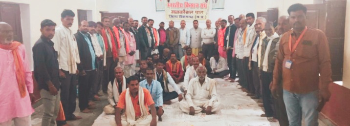 टीकमगढ़ । भारतीय किसान संघ जिला की मासिक बैठक कृषि उपज मंडी टीकमगढ़ में आयोजित हुई बैठक की शुरुआत ग्राम समिति गीत के गायन से युवा वाहिनी प्रमुख राकेश सिंह घोष ने की इसक बाद जिलाध्यक्ष शिव मोहन गिरि ने भारत माता, भगवान बलराम व दंतोपंत ठेंगड़ी का पूजन किया कर बैठक की शुरुआत की आज की बैठक में गोपाष्टमी पर्व का वृत्त सभी तहसील अध्यक्षों से लिया गया, संगठन विस्तार व ग्राम समिति निर्माण को लेकर भारतीय किसान संघ चलो ग्राम की ओर अभियान चलाएगा जिसमें किसानों की समस्याओं पर जोर दिया जाएगा, विधुत विभाग के साथ बैठक कर बिधुत सम्बंधित समस्याओं को हल कराने पर चर्चा हुई जिसकी जिम्मेदारी ऊर्जा आयाम प्रमुख संतोष राजपूत को दी गई। बैठक का संचालन जिला कोषाध्यक्ष अवधेश गिरि गोस्वामी ने किया। इस बैठक में जिला उपाध्यक्ष भागवत सिंह सोलंकी व बृजेश कुमार पाठक, जिला कार्यकारिणी सदस्य राघवेन्द्र सिंह घोष, राम किशन पाल, श्रीपत सिंह भदौरिया, डाॅ. अंश कुमार जैन, मोहनगढ़,दिगौड़ा तहसील अध्यक्ष फूल सिंह घोष, टीकमगढ़,बड़ागांव धसान तहसील अध्यक्ष रामचंद्र श्रोत्रिय, पलेरा तहसील अध्यक्ष हरपाल सिंह सिसोदिया, टीकमगढ़ तहसील संयोजक बद्री तिवारी, तहसील मंत्री निर्देश अहिरवार, तहसील उपाध्यक्ष नरेंद्र सिंह तोमर, तहसील कार्यकारिणी सदस्य डरु रजक, देशराज रजक, दिगौड़ा तहसील उपाध्यक्ष ग्यासी रैकवार, तहसील प्रचार प्रसार प्रमुख रंजीत सिंह घोष, तहसील कार्यकारिणी सदस्य हरप्रसाद चढ़ार, ग्राम समिति अध्यक्ष राजू चौबे, कमल सिंह ठाकुर, रामस्वरूप यादव, भगवत राठौर, रत्तू अहिरवार, हरिश्चंद्र घोष, घनश्याम रैकवार, प्रेम नारायण लोधी, प्रभु घोष, ईशन घोष, महुम घोष, प्रताप सिंह घोष, राजू पाल, सोबरन अहिरवार, कमल यादव, सोबरन अहिरवार, मलखान राजपूत, गब्बर सिंह घोष, शिवदयाल अहिरवार, बैजनाथ पाल, किशोरीलाल अहिरवार, प्रभुदयाल घोष, मनीराम रैकवार, प्रीतम चढ़ार, मोहित चढ़ार, भगवान दास अहिरवार, रामकिशन प्रजापति, इंदल अहिरवार सहित कई किसान मौजूद रहे। प्रेस को यह तमाम जानकारी भारतीय किसान संघ के जिला अध्यक्ष शिवमोहन गिरी ने व्हाट्सएप के माध्यम से प्रेस विज्ञप्ति जारी करते हुए दी है।