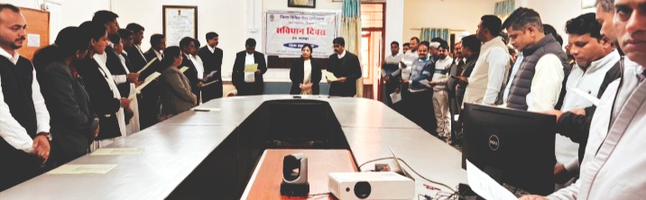 टीकमगढ़। संविधान दिवस के अवसर पर माननीय श्रीमती प्रवीणा व्यास, प्रधान जिला न्यायाधीश,अध्यक्ष जिला विधिक सेवा प्राधिकरण की अध्यक्षता में संविधान की प्रस्तावना का वाचन सभाकक्ष, जिला न्यायालय परिसर में किया गया। श्रीमती प्रवीणा व्यास, प्रधान जिला न्यायाधीश, अध्यक्ष, जिला विधिक सेवा प्राधिकरण द्वारा उक्त संविधान दिवस के अवसर पर संविधान की प्रस्तावना का वाचन के साथ-साथ उक्त संविधान दिवस के संबंध में विस्तृत जानकारी देते हुए बताया कि स्वतंत्र भारत के इतिहास में 26 नवंबर की अपनी खास अहमियत है। यही वह दिन है जब भारत ने अपने संविधान को अपनाया था। 1946 में संविधान बनाने के लिए संविधान सभा का गठन किया गया और संविधान तैयार करने में 2 वर्ष 11 माह और 18 दिन लगे। यह 26 नवम्बर 1949 को पूरा हुआ और अपनाया गया। हालांकि भारतीय संविधान 26 जनवरी 1950 को पूर्णतः लागू हुआ था। जिसे हम लोग हर साल 26 जनवरी को गणतंत्र दिवस के रूप में मनाते हैं। 26 नवंबर को संविधान दिवस के साथ-साथ राष्ट्रीय कानून दिवस भी मनाया जाता है। संविधान की प्रस्तावना के वाचन में प्रधान न्यायाधीश कुटुम्ब न्यायालय श्री शमरोज खान, विशेष न्यायाधीश श्री अशरफ अली सहित समस्त न्यायाधीशगण, सचिव जिला विधिक सेवा प्राधिकरण श्रीमती सुनीता गोयल, जिला विधिक सहायता अधिकारी श्री अनुज कुमार चंसौरिया, एल.ए.डी.सी.एस. के अधिवक्तागण, न्यायालय एवं जिला विधिक सेवा प्राधिकरण के कर्मचारीगण उपस्थित रहें। वाचन के पश्चात शास. कन्या उच्चतर माध्यमिक विद्यालय, टीकमगढ़ म.प्र. में संविधान दिवस के अवसर पर विधिक साक्षरता, जागरूकता शिविर का आयोजन किया गया, जिसमें श्री अनुज कुमार चंसौरिया, जिला विधिक सहायता अधिकारी, टीकमगढ़ द्वारा उपस्थित छात्राओं को संविधान दिवस के संबंध में विस्तृत जानकारी देते हुए छात्राओं को साइबर अपराध, मोबाइल दुरूपयोग के संबध्ंा में, पुलिस हेल्पलाईन नंबर 112, चाईल्ड हेल्पलाईन नंबर 1098 तथा निःशुल्क विधिक सहायता योजना के बारे मे विस्तृत जानकारी दी और कार्यक्रम के अंत में संविधान की प्रस्तावना का वाचन कराकर इसके महत्व को समझाया। इस अवसर पर विद्यालय के शिक्षकगण तथा अधिक संख्या में छात्रा उपस्थित रही।