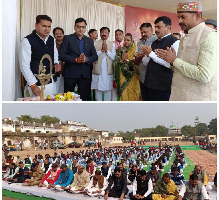 टीकमगढ़। अंतरराष्ट्रीय गीता महोत्सव के उपलक्ष्य में 1 दिसंबर 2025 सोमवार के दिन स्थानीय नजरबाग प्रांगण में जिला स्तरीय कार्यक्रम आयोजित किया गया। कार्यक्रम में श्रीमद् भागवद्गीता के 15वें अध्याय का सामूहिक सस्वर पाठ किया गया। सर्वप्रथम अतिथियों द्वारा कार्यक्रम का शुभारंभ दीप प्रज्ज्वलित कर किया। तत्पश्चात अतिथियों द्वारा श्रीमद् भागवद्गीता पर आधारित अपने विचार व्यक्त किये तथा जानकारी दी। कार्यक्रम में विवेक चतुर्वेदी, सांसद प्रतिनिधि अनुराग वर्मा, पूर्व विधायक राकेश गिरी गोस्वामी, पूर्व नगर पालिका अध्यक्ष श्रीमती लक्ष्मी गिरी गोस्वामी, अभिषेक खरे रानू, अन्य जनप्रतिनिधिगण, कलेक्टर विवेक श्रोत्रिय, जिला पंचायत सीईओ नवीत कुमार धुर्वे, सहित संबंधित अधिकारीगण, गणमान्यजन, सन्तजन तथा छात्र-छात्राओं ने श्रीमद् भागवद्गीता के 15वें अध्याय का सामूहिक रूप से सस्वर पाठ किया। कार्यक्रम स्थल पर संस्कृति विभाग द्वारा भगवान श्रीकृष्ण और श्रीमद् भागवद्गीता पर आधारित चित्र प्रदर्शनी भी लगाई गई, जिसका सभी के द्वारा अवलोकन किया गया तथा सराहना की गई। इस अवसर पर जनप्रतिनिधि, अपर कलेक्टर शिवप्रसाद मंडराह, एएसपी विक्रम सिंह कुशवाह, संयुक्त कलेक्टर शैलेन्द्र सिंह, डिप्टी कलेक्टर एसके तोमर, सीएमओ नगर पालिका टीकमगढ़ ओमपाल सिंह भदौरिया, तहसीलदार टीकमगढ़ सतेन्द्र सिंह गुर्जर सहित संबंधित अधिकारी तथा गणमान्यजन उपस्थित रहे।