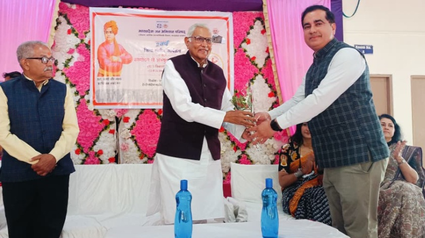 नर्मदापुरम / इस अवसर पर कार्यक्रम के मुख्य अतिथि विधायक डॉ. सीताशरण शर्मा रहे। उन्होंने स्वामी विवेकानंद के चित्र पर माल्यार्पण कर कार्यक्रम का शुभारंभ किया तथा मध्यप्रदेश जन अभियान परिषद के द्वारा चलाये जा रहे ग्रामोदय से अभ्यूदय अभियान की सराहना करते हुए कहा कि मुझे पूर्ण विश्वास है कि परिषद के प्रयासों से शासन की योजनाएं का लाभ गरीब व्यक्ति तक पहुंचेगा। उन्होंने स्वामी जी के जीवन, विचारों एवं अध्ययन पर सारगर्भित उद्बोधन दिया। अपने संबोधन में उन्होंने स्वामी विवेकानंद के आध्यात्मिक दर्शन का मूल सार बताते हुए कहा कि “नर सेवा ही नारायण सेवा”—अर्थात प्रत्येक मानव में निहित दिव्यता (आत्मा) को पहचानकर उसकी सेवा करना ही सर्वोच्च धर्म है। यह भाव आत्म-विश्वास, आत्म-ज्ञान एवं एकाग्रता से विकसित होता है। उन्होंने स्वामी विवेकानंद के प्रेरक मंत्र “उठो, जागो और लक्ष्य प्राप्ति तक रुको नहीं” को आत्मसात करने का आह्वान करते हुए आध्यात्मिकता को व्यक्तिगत एवं सामाजिक उत्थान से जोड़ा। कार्यक्रम में साहित्यकार संतोष व्यास ने “ग्रामोदय से अभ्युदय से” की अवधारणा पर प्रकाश डालते हुए कहा कि ग्राम स्तर पर सक्रिय सहभागिता से ही स्वच्छ, सशक्त एवं विकसित गांव का निर्माण संभव है। समाजसेवी डॉ. वैभव शर्मा ने स्वामी विवेकानंद के जीवन से प्रेरणा लेकर समाज को उस दिशा में आगे बढ़ाने की आवश्यकता पर बल दिया, जिसकी कल्पना स्वामी जी ने की थी। मोटिवेशनल स्पीकर श्रीमती शिवरंजनी टागरा स्वावलंबन विषय पर मार्गदर्शन दिया, श्रीमती दीप्ति दुबे के द्वारा आत्मनिर्भर बनने पर जोर दिया एवं डी एस डांगी ने भी अपने विचार व्यक्त करते हुए स्वामी विवेकानंद के जीवन, संघर्ष एवं आदर्शों पर प्रकाश डाला। संभाग समन्वयक कौशलेंद्र प्रताप तिवारी ने जानकारी दी कि मध्यप्रदेश जन अभियान परिषद द्वारा स्वामी विवेकानंद की जयंती 12 जनवरी से गणतंत्र दिवस 26 जनवरी 2026 तक “ग्रामोदय से अभ्युदय मध्यप्रदेश अभियान” के अंतर्गत ग्राम विकास पखवाड़ा आयोजित किया जा रहा है। जिला समन्वयक पवन सहगल ने बताया कि जन अभियान परिषद का उद्देश्य नवांकुर संस्थाओं एवं ग्राम विकास प्रस्फुटन समितियों के माध्यम से सरकार के विभिन्न विभागों की विगत दो वर्षों की उपलब्धियों एवं जनकल्याणकारी योजनाओं की जानकारी प्रदेश की समस्त ग्राम पंचायतों तक पहुँचाना है, ताकि योजनाओं का लाभ अंतिम पात्र हितग्राही तक सुनिश्चित रूप से पहुँचे।