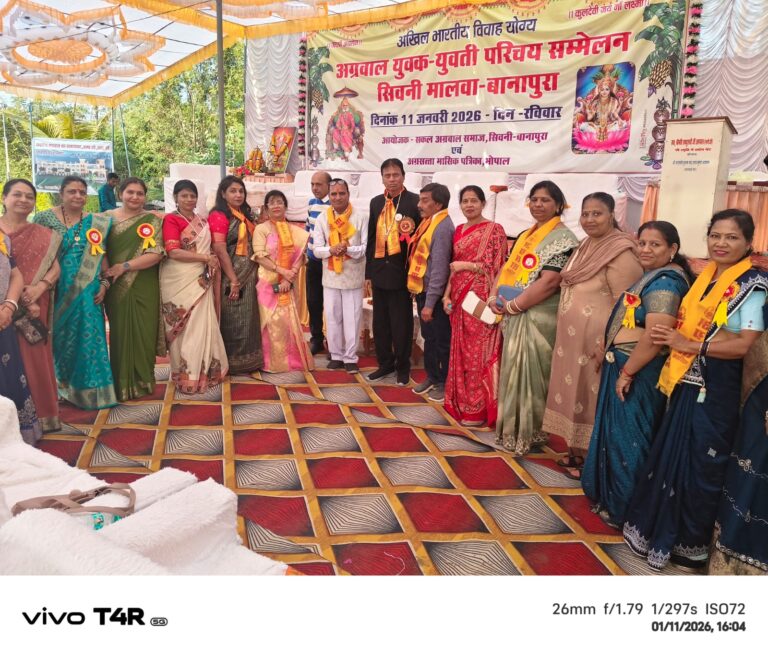 नर्मदापुरम /अखिल भारतीय अग्रवाल युवक – युवती परिचय सम्मेलन बानापुरा सिवनी मालवा में संपन्न हुआ अखिल भारतीय अग्रवाल महासभा के राष्ट्रीय अध्यक्ष सतीश अग्रवाल कार्य क्रम के मुख्य अतिथि थे! कार्य क्रम की सफलता के लिए छोटे से गांव बानापुरा के अग्रवाल समाज बधाई के पात्र है सभी व्यवस्थायें बहुत अच्छी थी राष्ट्रीय मासिक पत्रिका अग्र सत्ता के प्रधान संपादक श्री ओमप्रकाश अग्रवाल जी की मेहनत के कारण कार्य क्रम सफल रहा ! अग्रवाल समाज के हजारों भाई बहनों एकत्रित हुए मंच से लगातार युवक युवतीयों के परिचय कराये गये अग्रवाल समाज की बच्चीयो ने भी मंच से परिचय दिया अग्रवाल समाज के बाहर से पधारे समाज सेवियो एवं सक्रिय कार्य कर्ताओं कासम्मान किया गया राष्ट्रीय अध्यक्ष सतीश अग्रवाल जी ने कहा कि ऐसे कार्य क्रमों से समाज एकजुट होता है संबंध करने में धन एवं समय की बचत होती है अग्रवाल समाज अग्र रहा है और रहेगा सफल कार्य क्रम के लिए सभी का धन्यवाद दिया!