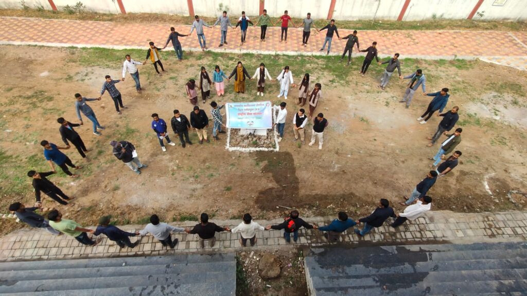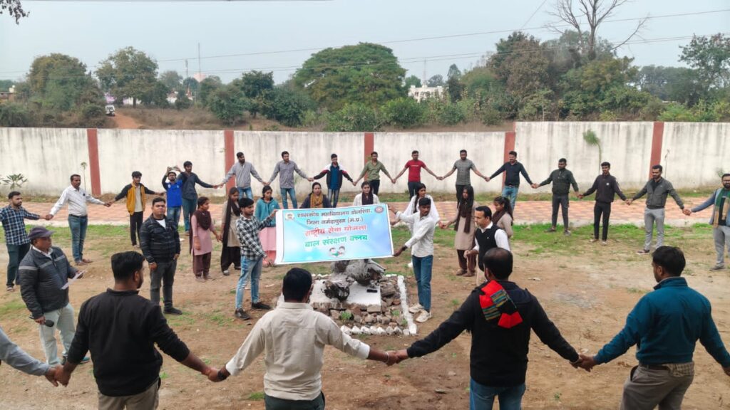 संवाददाता प्रवीण गौर डोलरिया//शासकीय महाविद्यालय डोलरिया में आज दिनांक 24.01.2026 पर राष्ट्रीय बालिका दिवस के उपलक्ष्य मे मानव शृंखला बनाई गई जिसका उद्देश्य बालिकाओ के अधिकारों, शिक्षा, स्वास्थ्य, पोषण तथा उनके समग्र कल्याण पर जोर देना हैं प्राचार्य डॉ. राकेश कुमार वर्मा ने बालिकाओ को सशक्त कर ही राष्ट्र निर्माण पर जानकारी दी साथ ही कार्यक्रम मे बाल विवाह रोकने हेतु शपथ भी ली गई | उक्त कार्यक्रम मे महाविधालय स्टाफ के साथ साथ राष्ट्रीय सेवा योजना स्वयसेवकों ने बढ़ चढ़ कर सहभागिता करी |