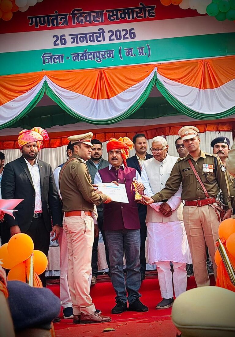 इटारसी-शहर इटारसी में अपराधों की रोकधाम के लिये टीआई गौरव सिंह बुंदेला हमेशा ही गंभीर रहते है।शहर में कोई भी घटना घटित होती है तो वह अपने दलबल के साथ मौके पर तत्काल पहुँचकर जांच शुरू कर देते है।आज गणतंत्र दिवस के अवसर पर जिला मुख्यालय पर जिले में सिर्फ एक ही थाना निरीक्षक का सम्मान किया गया।उक्त सम्मान इटारसी टीआई गौरव सिंह बुंदेला को दिया गया।उनको सम्मान उत्कृष्ट कार्यो के लिये सम्मानित किया गया।राज्यमंत्री नरेन्र्द शिवाजी पटेल लोक स्वास्थ्य एवं चिकित्सा शिक्षा विभाग के द्वारा नर्मदापुरम के परेड ग्राउंड में दिया गया।आपको बता दे कि यह कोई पहला सम्मान टीआई गौरव सिंह बुंदेला को उनके उत्कृष्ट कामों को लेकर नही मिला है।पूर्व में केसला में एक नाबालिक के साथ दुष्कर्म उसकी हत्या करने के मामले में आरोपी को गिरफ्तार करने और 11 दिन में इस मामले में पूरे ठोस सबूतों के साथ चालान पेश करने और आरोपी को मृत्युदंड न्यायालय से दिलाने पर केंद्रीय गृहमंत्री अन्वेषण उत्कृष्टता पदक से श्री बुंदेला को सम्मानित किया गया था।आज राज्यमंत्री नरेन्र्द शिवाजी पटेल,पूर्व विधानसभा अध्यक्ष एवं वर्तमान नर्मदापुरम विधायक डॉक्टर सीतासरन शर्मा,एवं एसपी साईं कृष्णा के द्वारा अपराधों पर नियंत्रण एवं कानून व्यवस्था बनाये रखने में महत्वपूर्ण योगदान देने पर सम्मानित किया गया।
