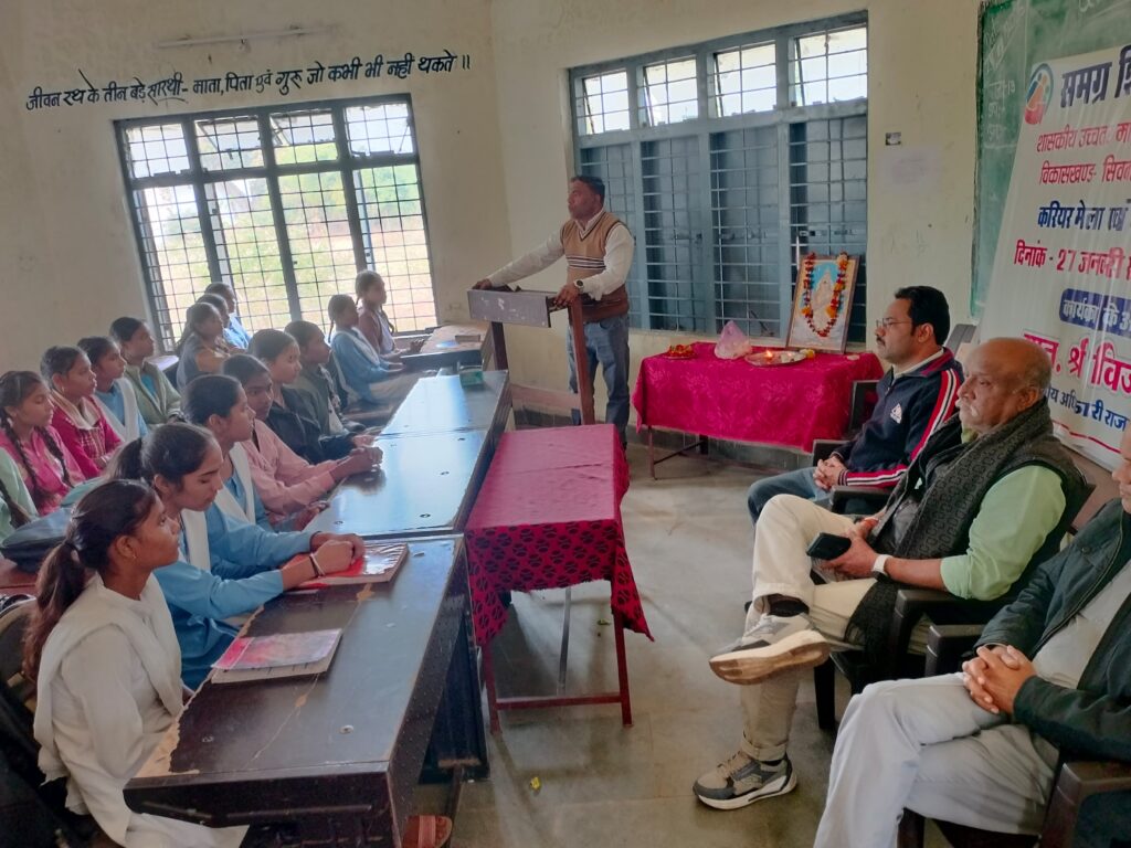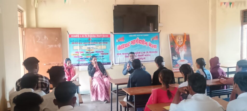 सिवनी मालवा- समग्र शिक्षा अभियान लोक शिक्षण संचालनालय मध्य प्रदेश भोपाल एवं जिला शिक्षा अधिकारी नर्मदा पुरम के निर्देश अनुसार दिनांक 27 जनवरी से 31 जनवरी 2026 तक कक्षा 9वी से 12वीं के विद्यार्थियों हेतु एवं करियर काउंसलिंग का शुभारंभ शासकीय उच्चतर माध्यमिक विद्यालय सोमलवाडा एवं हिरन खेड़ा में प्राचार्य राममोहन रघुवंशी एवं राकेश साहू द्वारा किया गया सर्वप्रथम मां सरस्वती की प्रतिमा पर पूजन अर्चन कर करियर मेले की शुरुआत की गई करियर मेले का संचालन संस्था के शिक्षक मधु हुरमाडे द्वारा किया गया जिसमें करियर जागरूकता, करियर मेला एवं काउंसलिंग का परिचय शैक्षिक संकायो की जानकारी, स्थानीय उद्योगों के बारे में जानकारी दी गई प्राचार्य द्वारा अपने व्यवहारिक ज्ञान के आधार में शिक्षा करियर के बारे में बताया गया कि पहले धन एवं शिक्षा में कमी थी किंतु आज शिक्षा के आधुनिकीकरण से आसानी से विद्यार्थी अपने जीवन में लक्ष्य प्राप्त कर सकते हैं कार्यक्रम के नोडल अधिकारी शिक्षक अखिलेश यादव द्वारा विभिन्न प्रतियोगी परीक्षाओं की जानकारी से अवगत कराया गया करियर मेला एवं करियर काउंसलिंग का मुख्य उद्देश्य विद्यार्थियों को शैक्षणिक व्यवसायिक कौशल आधारित यूनिसेफ द्वारा वेबीनार के माध्यम से जीवन कौशल करियर योजना करियर कार्ड एवं विद्यार्थियों के भविष्य की तैयारी पर मार्गदर्शन एवं शासकीय सेवाओं से संबंधित करियर विकल्पों की जानकारी प्रदान किया जाना है कार्यक्रम में विद्यालय के शिक्षक वीरेंद्र यादव, शिव शंकर चौधरी, योगेंद्र मालवीय, आशीष यादव, सुनीता राजपूत, शिखा रघुवंशी, शिवम ठाकुर एवं कक्षा नौवीं से 12वीं तक के छात्र छात्राएं उपस्थित हुए