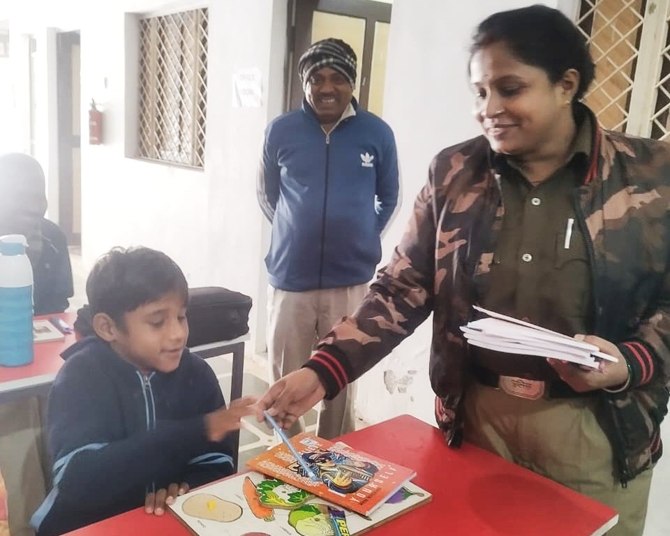 महिला सेल टीम द्वारा बच्चों से गिनती, स्पेलिंग एवं सामान्य ज्ञान से जुड़े प्रश्न पूछे गए, जिनका बच्चों ने पूरे उत्साह, आत्मविश्वास और प्रसन्नता के साथ उत्तर दिया। बच्चों की सीखने की क्षमता और उनके चेहरों पर खिली मुस्कान ने पूरे वातावरण को भावनात्मक रूप से स्पर्श कर दिया।
