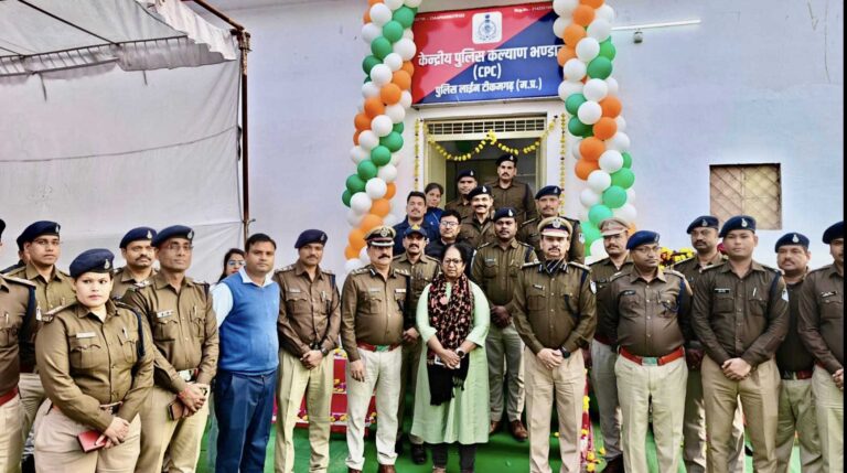 टीकमगढ़। पुलिस लाइन परिसर, टीकमगढ़ में आज दिनांक 04 फ़रवरी 2026 को नवनिर्मित पुलिस केंटीन का विधिवत लोकार्पण पुलिस महानिरीक्षक, सागर जोन डॉ. हिमानी खन्ना एवं उप पुलिस महानिरीक्षक, छतरपुर रेंज विजय खत्री द्वारा पुलिस अधीक्षक टीकमगढ़ मनोहर सिंह मंडलोई की गरिमामयी उपस्थिति में किया गया।