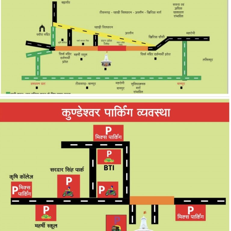 टीकमगढ़ से महरौनी जाने वाले वाहन टीकमगढ़ पी.जी. कॉलेज श्मशान घाट बानपुर महरौनी उक्त मार्ग से यात्री बसें, भारी वाहन, चार पहिया एवं दो पहिया वाहन आवागमन कर सकेंगे।–पार्किंग व्यवस्था–चार पहिया वाहन पार्किंग टीकमगढ़ से कुंडेश्वर मंदिर आने वाले दर्शनार्थियों के चार पहिया वाहनों की पार्किंग प्रथम पार्किंगबीटीआई, डाइट प्रांगण द्वितीय पार्किंग महर्षि विद्या मंदिर स्कूल प्रांगण तृतीय पार्किंग कृषि महाविद्यालय क्रिकेट ग्राउंड—-तीन पहिया वाहन ई-रिक्शा,ऑटो– टीकमगढ़ से कुंडेश्वर मंदिर आने वाले ई-रिक्शा एवं पेट्रोल, डीजल ऑटो मेला ग्राउंड के समीप सब्जी बाजार क्षेत्र में सवारी उतारने एवं बैठाने की व्यवस्था रहेगी। -दो पहिया वाहन पार्किंग—-प्रथम पार्किंग बीटीआई,डाइट ग्राउंड द्वितीय पार्किंग सरदार सिंह पार्क इसके पश्चात क्रमश महर्षि विद्या मंदिर स्कूल प्रांगण कृषि महाविद्यालय क्रिकेट ग्राउंड—ट्रैक्टर-ट्रॉली पार्किंग— टीकमगढ़ से आने वाली ट्रैक्टर-ट्रॉली की पार्किंग कृषि महाविद्यालय क्रिकेट ग्राउंड में की जाएगी। एवं महरौनी की ओर से आने वाली ट्रैक्टर ट्रॉली जमडार नदी के पूर्व –अन्य महत्वपूर्ण व्यवस्थाएँ—-पहाड़ी तिलवारन से कुंडेश्वर आने वाले वाहनों* की पार्किंग फुटबॉल ग्राउंड, कुंडेश्वर पहाड़ी तिलवारन रोड पर निर्धारित की गई है। महरौनी से कुंडेश्वर आने वाले सभी वाहन श्रद्धालु जामडार नदी से पहले स्थित खाली मैदान में अपने वाहन पार्क करेंगे। जामडार नदी से बीटीआई डाइट गेट तक श्रद्धालुओं की अधिक संख्या होने के कारण वाहनों का आवागमन प्रतिबंधित रह सकता है।—-यात्रियों से पुलिस की अपील–टीकमगढ़ से ललितपुर,महरौनी एवं ललितपुर,महरौनी से टीकमगढ़ आने-जाने वाले यात्रियों से अनुरोध है कि वे बानपुर रोड मार्ग का उपयोग करें। महरौनी बानपुर टीकमगढ़ मार्ग अपेक्षाकृत अधिक सुविधाजनक रहेगा, अतः इसी मार्ग से आवागमन करना सुनिश्चित करें। टीकमगढ़ पुलिस श्रद्धालुओं से सहयोग की अपील करती है कि निर्धारित यातायात एवं पार्किंग व्यवस्था का पालन करें, जिससे महाशिवरात्रि पर्व शांतिपूर्ण, सुरक्षित एवं सुव्यवस्थित रूप से संपन्न हो सके।