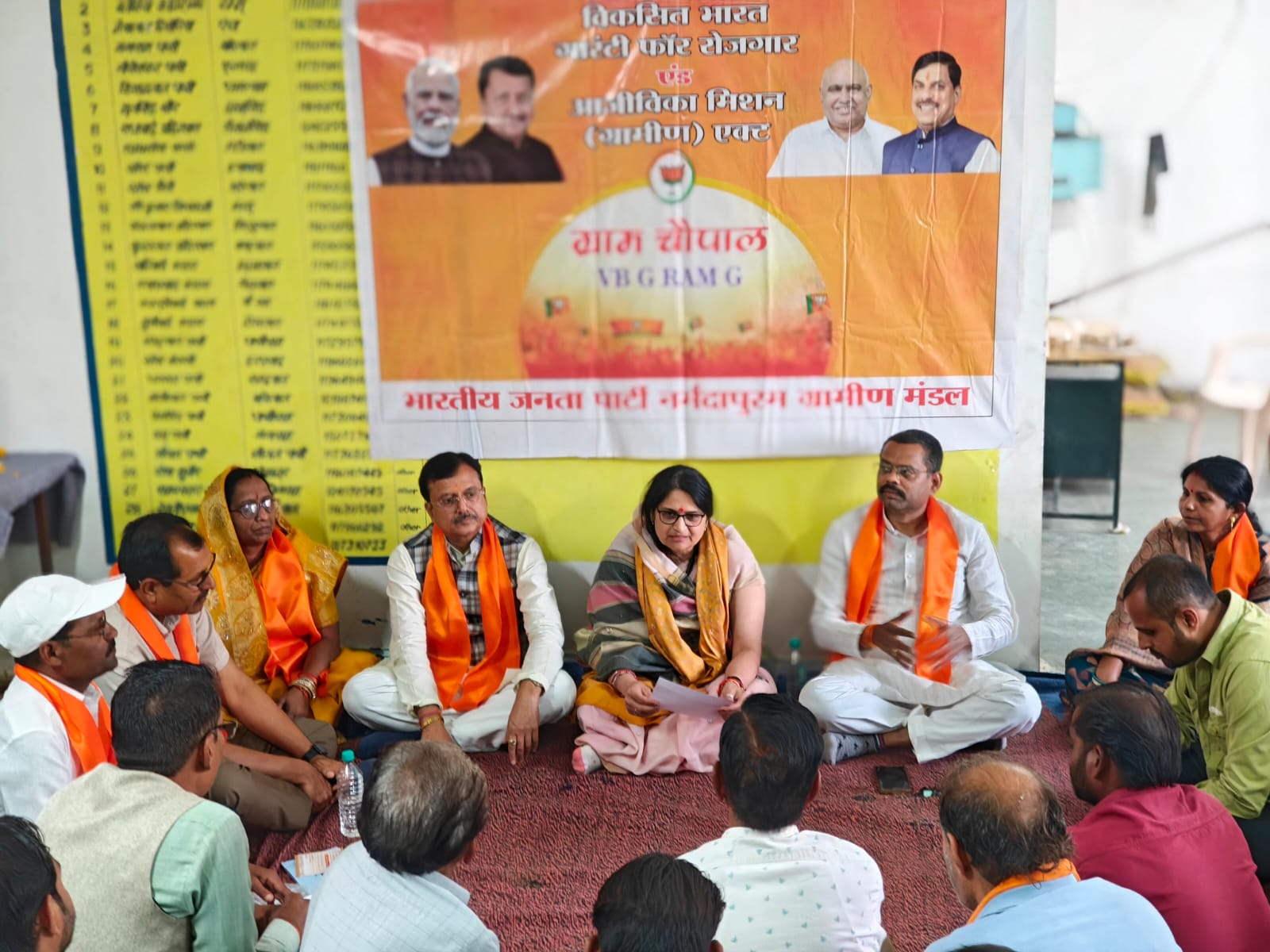 नर्मदापुरम। विकसित भारत गारंटी रोजगार एवं आजीविका मिशन ग्रामीण एक्ट (VB G RAM G) अभियान जिला अध्यक्ष प्रीति शुक्ला के मार्गदर्शन में जिलेभर में चलाया जा रहा है। अभियान के जिला संयोजक प्रसन्न हर्णे ने बताया कि यहअभियान जिला अध्यक्ष प्रीति शुक्ला के मार्गदर्शन में निरंतर आगे बढ़ रहा है। ग्रामीण मंडल अध्यक्ष गोकुल पटेलने बताया मंगलवार कोनर्मदापुरम ग्रामीण मंडल के ग्राम रायपुर में ग्राम चौपाल कार्यक्रम का आयोजनपंचायत भवन प्रांगण में किया गया। साथ ही पंडित दीनदयाल उपाध्याय की पुण्यतिथि परसमर्पण अभियान भी आयोजित किया गया।कार्यक्रम में उनके एकात्म मानवदर्शन और अंत्योदय के विचारों को स्मरण करतेहुए संगठन को समर्पण भाव से सशक्त बनाने तथा अंतिम व्यक्ति तक शासन की योजनाओं कोपहुंचाने का संकल्प लिया गया।जिला अध्यक्ष प्रीति शुक्ला ने कहा कि VB G RAM G अभियान के माध्यमसे ग्रामीण क्षेत्रों में रोजगार एवं आजीविका के अवसरों को बढ़ाने का प्रभावी प्रयासकिया जा रहा है।बैठक में प्रमुख रूप से प्रसन्न हर्णे, ज्योति चौरे, भूपेंद्र चौकसे, विवेक गौर, गोकुल पटेल, हिमाचल सिंह, जयसिंह प्रधान, प्रीति चिरगानिया, विनोद कहार, धनराज बावरिया, राघवेंद्र वर्मा, बृजेश कहार, राजा कहार तथा सनी मिश्रा सहित भारतीय जनता पार्टीके कार्यकर्ता, मातृशक्ति एवं ग्राम के वरिष्ठजन उपस्थित रहे।