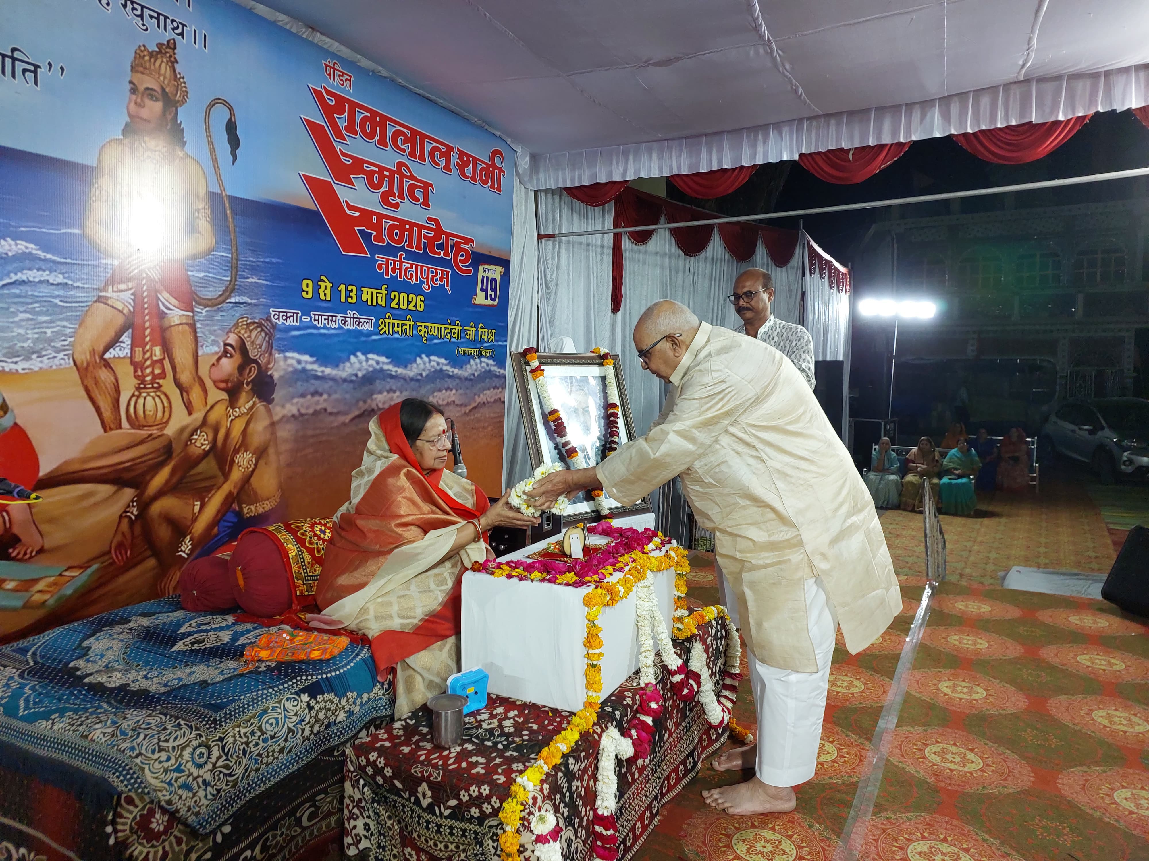 नर्मदापुरम /सत्संग चौक सेठानी घाट पर आयोजित पांच दिवसीय पंडित रामलाल शर्मा स्मृति समारोह के दूसरे दिन व्यासगादी से प्रवचन देते हुए श्रीमती कृष्णा देवी मिश्रा ने कहा कि श्री हनुमान जी और विभीषण जी की परिस्थितियों में कई समानताएं हैं। दोनों को ही श्री सीताराम जी अर्थात भगवान प्राप्ति के मार्ग में आने वाली कई कठिनाइयों का सामना करना पड़ता है ।श्री हनुमान जी जब माता सीता की खोज में यात्रा प्रारंभ करते हैं तो उनके रास्ते में अनेक विघ्न उपस्थित होते हैं, और अंत में वे सभी कठिनाइयों को पार कर मां जानकी के दर्शन करते हैं। यह उनके अखंड विश्वास के कारण होता है। इसी तरह जिस तरह लंका में राक्षसों के बीच रहकर भी विभीषण अपने घर में तुलसी के पौधे और रामायुध् अंकित घर में सुबह-सुबह राम राम सुमिरन करते हैं वह उनकी साधुता और सज्जनता का परिचय देता है। सुंदरकांड में आता है राम राम तेहि सुमिरन कीन्हा ,हृदय हरस कपि सज्जन चीन्हा ।अर्थात जो व्यक्ति सुबह उठकर भगवान का नाम स्मरण करता है यथार्थ में वही सज्जन है। आपने शरणागति प्रसंग को विस्तार देते हुए कहा कि हनुमान जी विभीषण को भ्राता कहकर संबोधित करते हैं अर्थात शरणागति की दृष्टिकोण से वे दोनों ही भगवान के दृढ़ भरोसे हैं ।केवल श्री हनुमान जी एवं विभीषण ही नहीं वरन हम सब भी जैसे किसी बड़े चित्र में अंकित वस्तु चित्र का ही भाग होती है इस तरह भगवान के ही हैं। बस हमें अपने विश्वास को बनाए रखने की आवश्यकता है यदि हनुमान जी रूपी सद्गुरु हमें मिल जाते हैं तो हमारी नैया भी इस भवसागर से पार हो सकती है ।श्रीमती कृष्णा देवी ने कथा प्रसंग के दौरान श्री रामकृष्ण परमहंस के कई संस्करणों के साथ-साथ कृति वास रामायण के भी विभिन्न प्रसंग का उल्लेख किया। कार्यक्रम के आरंभ में श्रीमती कृष्णा देवी का स्वागत पूर्व अध्यक्ष जिला पंचायत पंडित भवानी शंकर शर्मा के साथ ,प्रो के जी मिश्र , सागर शिवहरे ,वशिष्ठ नारायण त्रिपाठी , सन्तोष उपाध्याय , महेंद्र चौकसे , ओ पी शर्मा ने किया स्वागत के पश्चात भजनांजली के अंतर्गत भजन गायक चित्रांश गोपाल अग्रवाल द्वारा सुमधुर भजन की प्रस्तुति दी गई ।आपके साथ सक्षम पाठक द्वारा तबला आदित्य परसाई द्वारा हारमोनियम एवं गिटार पर यश मालवीय द्वारा सहयोग किया गया। कार्यक्रम का समापन श्रीमती कृष्णा देवी के सुप्रसिद्ध शयन पद नैनों में नींद भर आई के द्वारा हुआ। कार्यक्रम में बड़ी संख्या में श्रद्धालु उपस्थित हुए।
