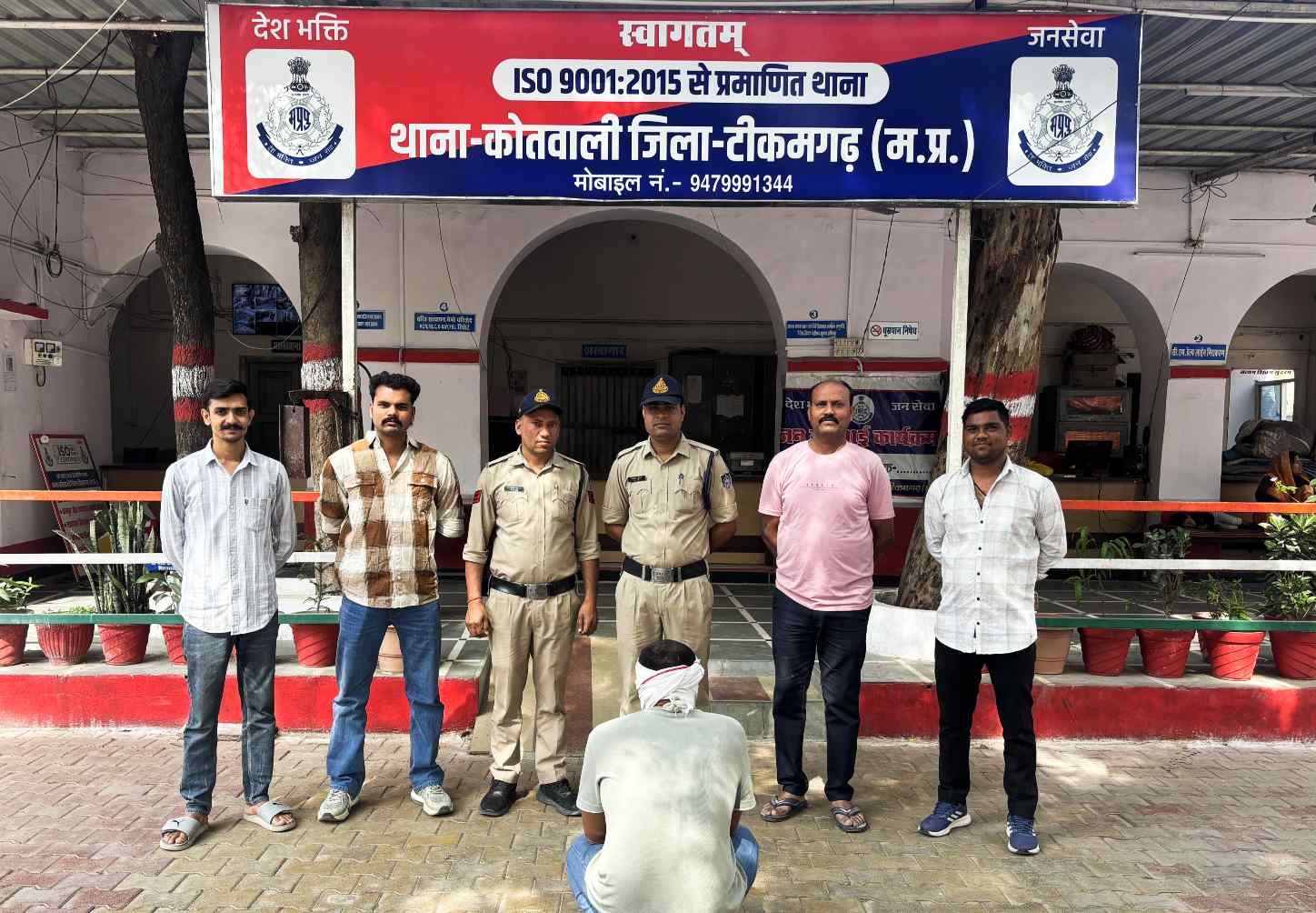 दिनांक 22 मार्च 2026 को मुखबिर से प्राप्त सूचना के आधार पर कोतवाली पुलिस टीम ने आरोपी को मुकुल पैथोलॉजी के सामने झांसी रोड टीकमगढ़ से अभिरक्षा में लिया। आवश्यक वैधानिक कार्रवाई के बाद आरोपी को विधिवत गिरफ्तार कर माननीय न्यायालय में पेश किया गया।
