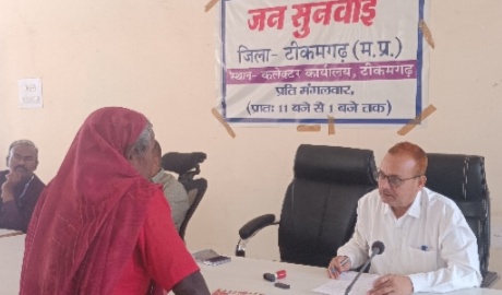 टीकमगढ़। शासन के निर्देशानुसार आज जिला मुख्यालय पर संयुक्त कार्यालय परिसर में जनसुनवाई आयोजित की गई। संयुक्त कार्यालय परिसर स्थित जनसुनवाई कक्ष में संयुक्त कलेक्टर शैलेन्द्र सिंह ने डिप्टी कलेक्टर एसके तोमर के साथ आमजन से प्राप्त शिकायतों एवं समस्याओं को सुना तथा निराकरण हेतु संबंधित विभागों के अधिकारियों को निर्देशित किया। उन्होंने प्राप्त आवेदनों पर संबंधित विभागों के अधिकारियों को त्वरित कार्यवाही करते हुए शीघ्र निराकरण करने के निर्देश दिए। इस दौरान संबंधित अधिकारी उपस्थित रहे। जनसुनवाई में मंगलवार 24 मार्च 2026 को आमजन से प्राप्त 45 आवेदनों पर सुनवाई की गई। आवेदन पत्रों को 10 दिवस में निराकृत कर उसका प्रतिवेदन प्रस्तुत करने के निर्देश दिये गये। जनसुनवाई में आमजनता से प्राप्त पेंशन, उपचार सहायता, खाद्यान्न पर्ची प्राप्त नहीं होने, गरीबी रेखा में नाम शामिल करने, सीमांकन, विधवा तथा दिव्यांग पेंशन, राहत राशि के वितरण तथा जाति प्रमाण पत्र सहित विभिन्न आवेदन पत्रों पर सुनवाई की गई।
