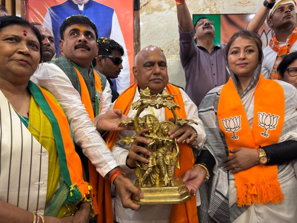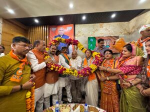 नगर में पूर्व विधायक राकेश गिरी गोस्वामी ने अपनी धर्मपत्नी लक्ष्मी गिरी के साथ हजारों भाजपा कार्यकर्ताओं की उपस्थिति में प्रदेश अध्यक्ष का जोरदार स्वागत किया। इस दौरान पारंपरिक तरीके से सम्मान करते हुए उन्हें प्रतिमा भेंट की गई। स्वागत कार्यक्रम में कार्यकर्ताओं ने फूल-मालाओं से उनका अभिनंदन किया और पार्टी के समर्थन में नारे भी लगाए।