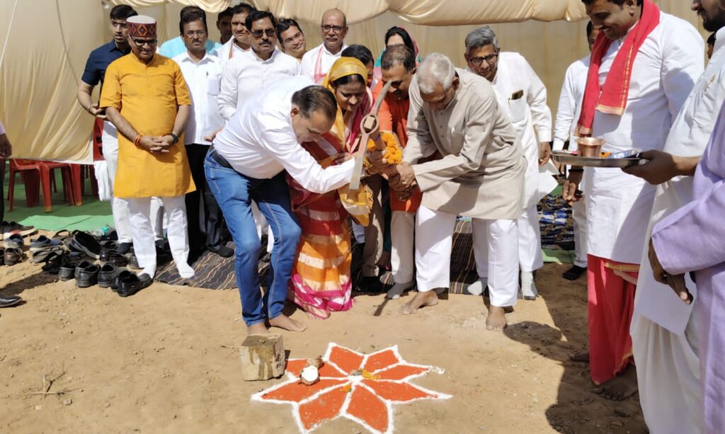 नर्मदापुरम. से प्रवीण गौर की खास खबर //यह बुदनी के बागवाडा ग्राम में स्थित विद्या भारती मध्यभारत प्रांत के प्रस्तावित सम्राट विक्रमादित्य सैनिक स्कूल प्रांगण में प्राथमिक विद्यालय एवं छात्रावास भवन का भूमिपूजन किया गया, इस अवसर पर मुख्य अतिथि के रूप में श्री एस. के. सिंह क्षेत्रीय अधिकारी, भारतीय राष्ट्रीय राजमार्ग प्राधिकरण,अध्यक्ष श्री अशोक पाण्डेय मा. प्रांत संघचालक, राष्ट्रीय स्वयंसेवक संघ, मध्यभारत,, विशिष्ट अतिथि – श्री निखिलेश महेश्वरी प्रांत संगठन मंत्री, विद्या भारती मध्यभारत,श्री मोहनलाल गुप्ता अध्यक्ष,सरस्वती विद्या प्रतिष्ठान म.प्र.,राष्ट्रीय स्वयंसेवक संघ सहित सम विचारी संगठन के पदाधिकारी, विद्या भारती संगठन के अधिकारी गण एवं गणमान्य नागरिक उपस्थित थे। उपस्थित अतिथियों ने वैदिक विधि से मन्त्रोंपचार कर भूमि पूजन किया,भूमि पूजन पश्चात ॐ आकर में निर्मित सैनिक स्कूल एवं प्राथमिक विद्यालय पट का अनावरण माननीय प्रान्त संघ चालक जी द्वारा किया गया।