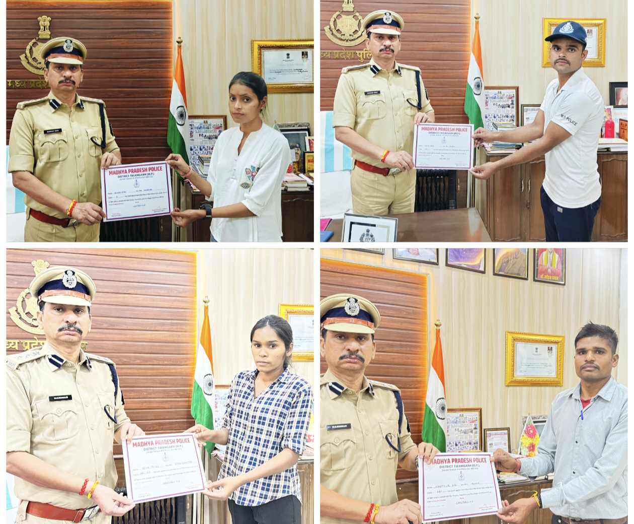 टीकमगढ़ पुलिस अधीक्षक कार्यालय में एक औपचारिक समारोह का आयोजन किया गया, जिसमें पुलिस अधीक्षक श्री मनोहर सिंह मंडलोई ने नव नियुक्त 04 आरक्षकों को उनके नियुक्ति आदेश प्रदान किए। इस अवसर पर अतिरिक्त पुलिस अधीक्षक विक्रम सिंह कुशवाहा, सूबेदार उत्तम सिंह तथा एएसआई लक्ष्मीकांत कड़ा की उपस्थिति रही।