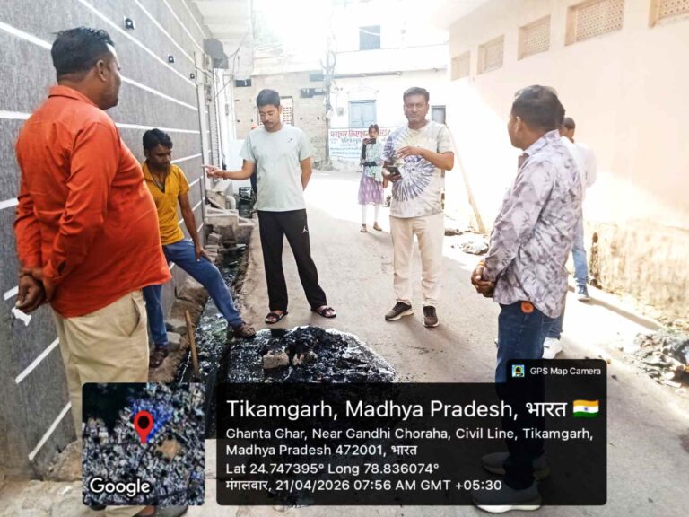 टीकमगढ़। दिनांक 21 अप्रैल 2026 को कलेक्टर महोदय के निर्देशानुसार मुख्य नगर पालिका अधिकारी श्री ओमपाल सिंह भदौरिया द्वारा स्वच्छ सर्वेक्षण 2025 एवं नाली सफाई अभियान के तहत शहर में व्यापक सफाई अभियान चलाया गया।
